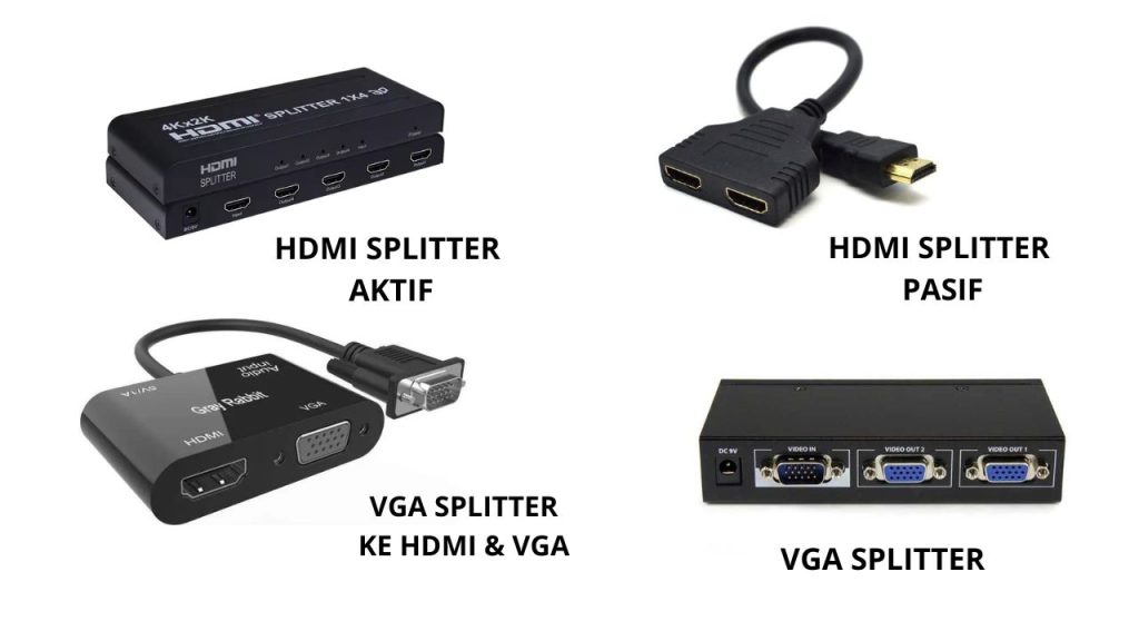 Tidak memerlukan sumber daya eksternal dan bekerja hanya dengan membagi sinyal secara sederhana. Namun, jenis ini biasanya hanya efektif untuk jarak kabel yang pendek, di bawah 5 meter dan resolusi menengah. - VGA Splitter