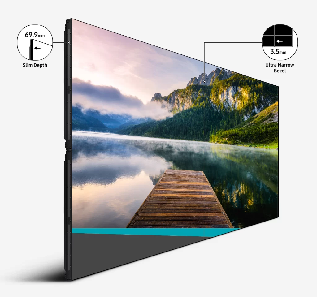Video wall menggunakan beberapa panel yang disusun bersama untuk menciptakan tampilan besar. Setiap panel biasanya dipisah dengan garis hitam layaknya bingkai yang disebut Bezel. Layar dengan bezel tipis atau tanpa bezel menawarkan pengalaman visual yang lebih mulus. Video wall dengan bezel tipis atau bahkan Bezel-less, tentunya lebih mahal daripada bezel yang lebih tebal, karena teknologi layar dan tampilannya lebih canggih dan terintegrasi.