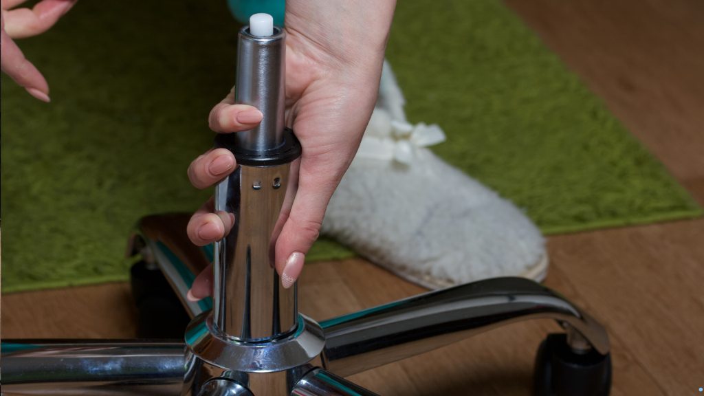 Langkah selanjutnya yang harus Anda kerjakan adalah memasang tabung Hidrolik. Apa itu tabung hidrolik? Tabung hidrolik merupakan tabung berisi cairan khusus yang bisa berfungsi untuk memberikan tekanan sehingga kursi kantor dapat bergerak naik turun untuk mengatur ketinggian dudukan kursi.