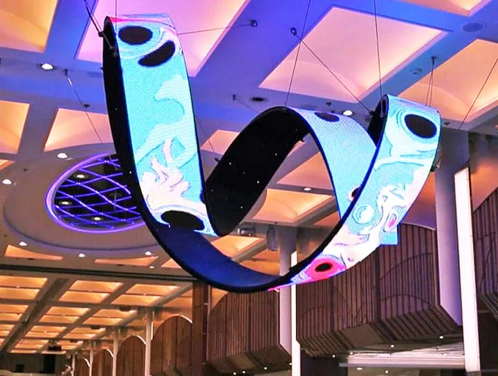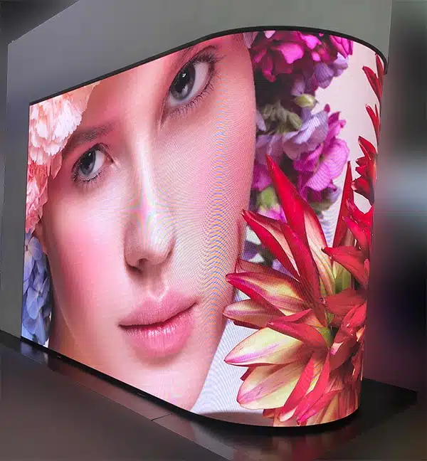 Videotron lengkung menggunakan sistem modular yang dapat disesuaikan, memungkinkan desain yang fleksibel dan kreatif. Panel-panel LED yang dapat disusun dalam berbagai bentuk dan ukuran memberikan kebebasan dalam menciptakan desain visual yang sesuai dengan kebutuhan acara atau pameran seni. Karena bentuknya yang melengkung, videotron ini menciptakan tampilan visual yang lebih mengalir dan dinamis. Konten yang ditampilkan seolah-olah berputar atau mengalir mengikuti bentuk lengkung layar tersebut.