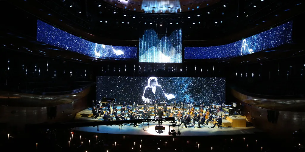 Dalam acara musik atau konser, videotron lengkung dapat digunakan untuk menampilkan visual yang mendalam, memberikan efek visual yang sinkron dengan musik, menciptakan pengalaman yang lebih imersif dan menyeluruh.