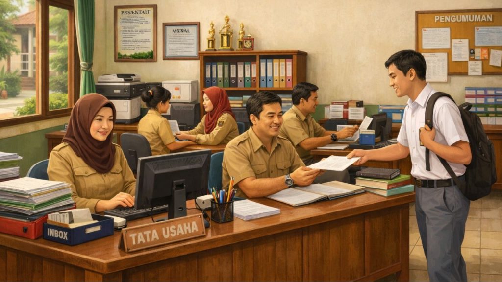 Ruang kantor tata usaha sekolah merupakan pusat operasional yang mendukung kelancaran administrasi pendidikan. Di tengah tuntutan efisiensi, desain yang tepat tidak hanya meningkatkan produktivitas staf, tetapi juga mencerminkan nilai-nilai institusi pendidikan seperti disiplin, kolaborasi, dan kenyamanan. Konsep desain ruang kantor tata usaha sekolah yang ideal bisa terbagun mulai dari memahami prinsip dasar hingga elemen spesifik yang relevan dengan kebutuhan di Indonesia. Selain itu pertimbangan anggaran yang terbatas dan iklim tropis juga patut menjadi perhatian khusus.