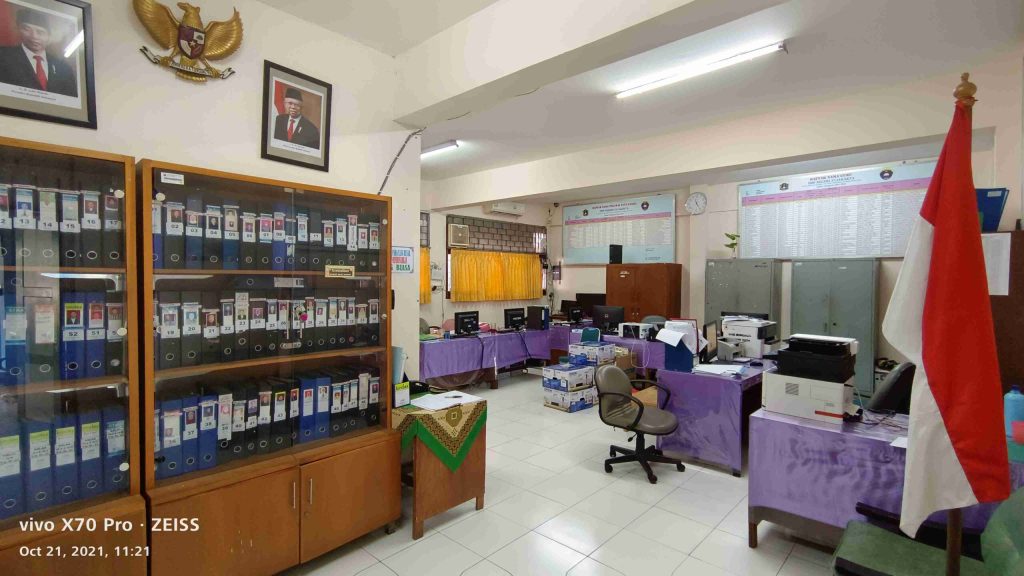 Tata letak ruang kantor tata usaha sekolah harus mendukung kolaborasi tanpa mengganggu konsentrasi individu. Pastikan pintu masuk dekat dengan koridor sekolah untuk akses mudah orang tua atau guru, dengan elemen keamanan seperti CCTV. Selain itu, hindari desain open-plan penuh, misalnya dengan menggunakan partisi rendah (tinggi 120 cm) dari kayu atau fiberboard untuk membagi area kerja.