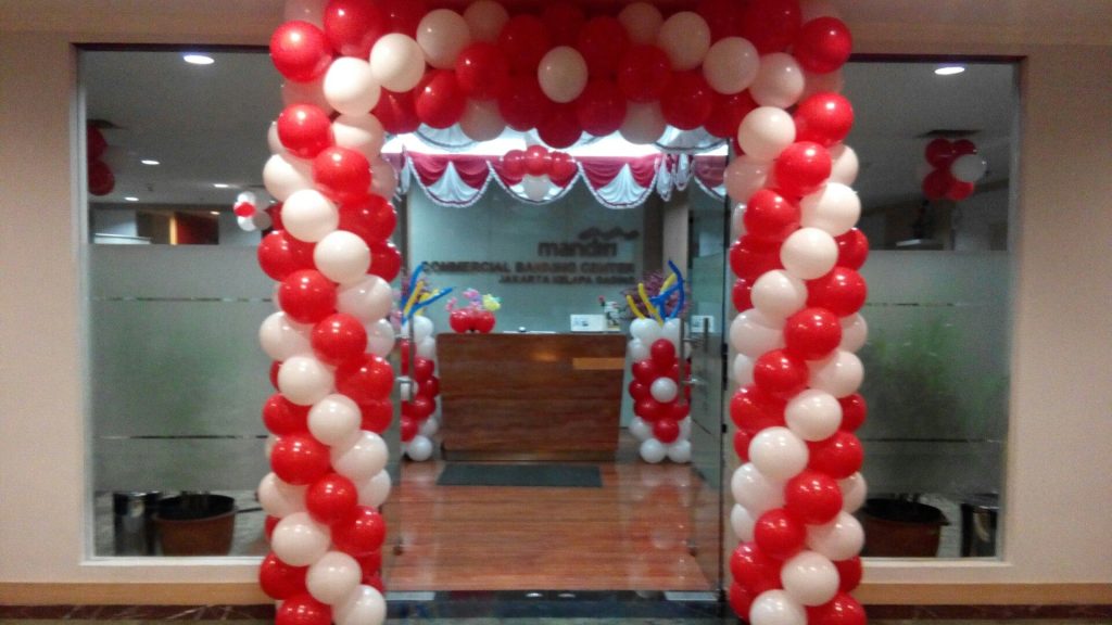 Buat dekorasi pintu masuk kantor menyerupai gerbang atau gapura kemerdekaan, lengkap dengan ornamen bendera merah putih, tulisan “Dirgahayu Republik Indonesia” dan tahun kemerdekaan yang biasanya sudah memiliki desain resmi dari pemerintah. Anda juga bisa menggunakan balon standing, atau menambahkan elemen seperti miniatur bambu runcing atau banner gambar pahlawan nasional. Terutama bagi Perusahaan yang berhubungan dengan klien atau pihak luar, gerbang Merdeka ini bisa menjadi daya tarik utama saat akan memasuki gedung Perusahaan anda.