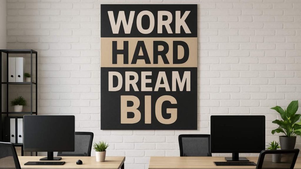 Memasang kutipan-kutipan motivasi dalam bentuk poster, stiker dinding, atau pigura adalah salah satu ide populer di kantor modern saat ini. Kutipan ini bisa berupa kata-kata inspiratif dari tokoh terkenal atau visi dan misi perusahaan. Hiasan ini tidak hanya memperindah ruangan, tetapi juga mengingatkan seluruh tim untuk tetap fokus, bersemangat, dan bekerja sama untuk mencapai tujuan bersama.