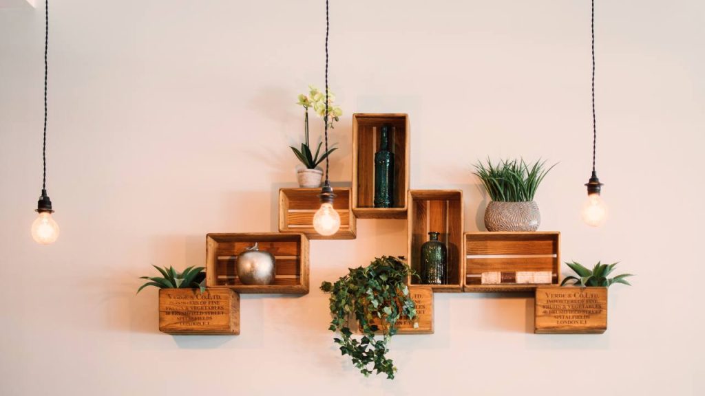 Memasukkan unsur alam ke dalam ruang kerja dapat memberikan efek menenangkan. Tanaman hias gantung atau tanaman yang ditempatkan di pot kecil di dinding dapat menjadi solusi tepat. Selain mempercantik dinding, tanaman juga membantu menyegarkan udara di dalam ruangan. Beberapa jenis tanaman yang cocok untuk hiasan dinding kantor antara lain sirih gading, kaktus mini, atau succulent.