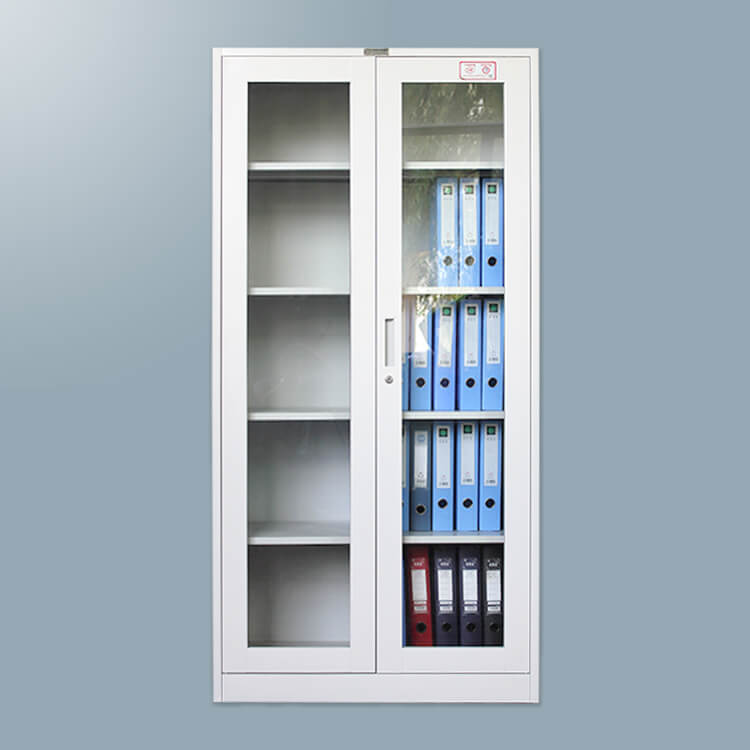 Bahan Kaca pada lemari arsip biasanya dijadikan pelengkap untuk mempercantik tampilan. Penggunaan bahan kaca biasanya pada bagian depan atau pintu. Kaca memberi kesan modern dan transparansi, sehingga mudah melihat apa yang ada di dalam lemari tanpa perlu membukanya. Lemari Arsip yang menggunakan Kaca, umumnya digunakan di ruang kerja yang membutuhkan tampilan rapi dan ingin menunjukkan isi lemari dengan cara yang elegan.