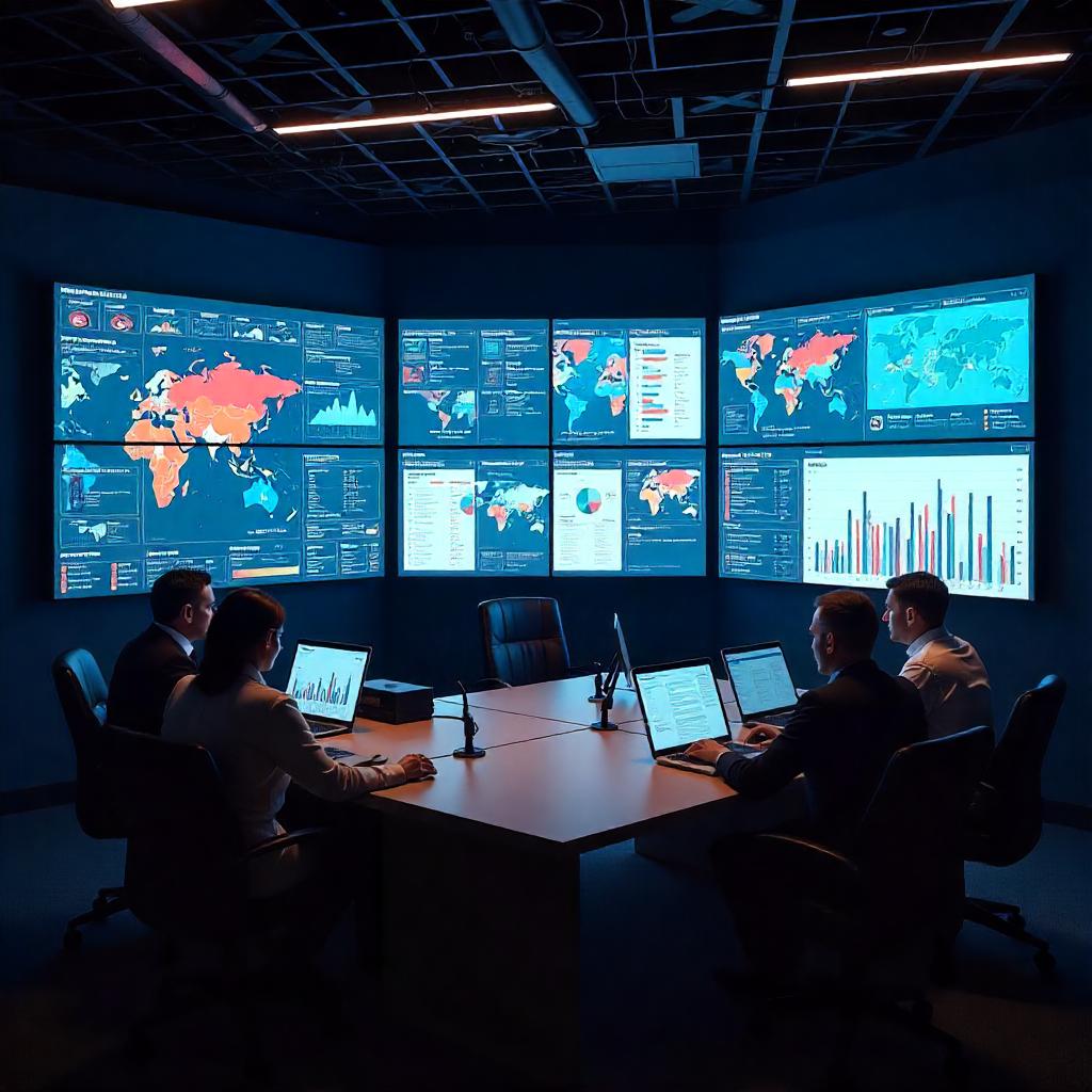 Penggunaan Software Kolaboratif seperti Google Workspace atau Microsoft Teams yang bisa langsung terhubung dengan video wall, memungkinkan peserta untuk bekerja sama pada file atau dokumen secara real-time. Video Wall juga bisa menampilkan grafis atau animasi untuk membuat presentasi atau data lebih menarik. Misalnya, transisi halus antar slide, animasi data, atau visualisasi 3D yang bisa membantu menyampaikan pesan secara lebih efektif dan dinamis. Pilih visual yang sesuai dengan tema atau tujuan rapat. Visual yang inovatif, seperti citra futuristik, desain geometris, atau animasi abstrak, bisa menciptakan kesan ruang rapat tidak membosankan dan makin asik.